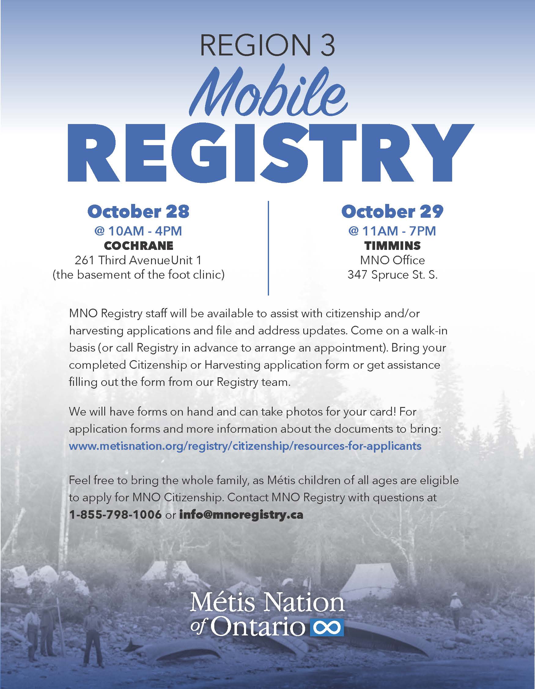 MNO Registry staff will be available to assist with citizenship and/or harvesting applications and file and address updates. Come on […]