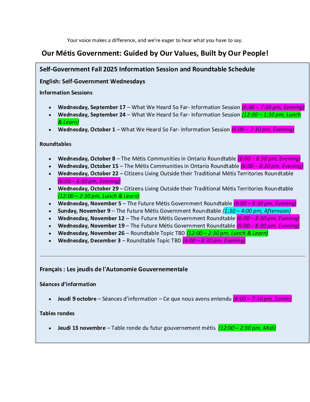 2024-03-13Should you want to learn more about our language please visit the Métis Nation of Ontario website metisnation.org, under Programs and Services – Education & Training – Métis Languages Initiatives – Métis Learning Resources.